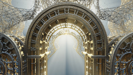 As the magnificent golden gates slowly part, a brilliant, warm light spills forth, offering a glimpse into eternity.
