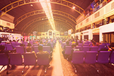 Bangkok, Thailand October, 21,2018 Thai and foreign tourists sit on the train at the station for a weekend trip during the winter.
