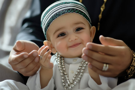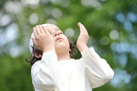 A little Arabic boy praying outdoor in nature