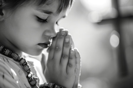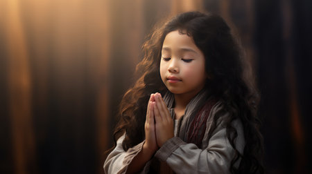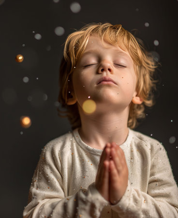 little boy praying to God with hands together pray in silence stock image stock photo
