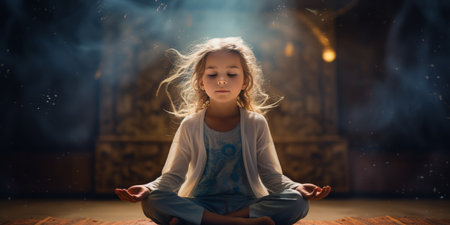 Woman meditating, balancing energy. Hands in mudra position.