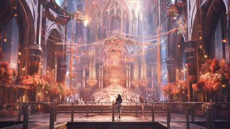 Majestic gothic basilica with stained glass windows and illuminated altar generated by artificial intelligence