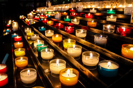 September 14th 2017, Lisbon, Portugal: burning red sacrificial candles in church