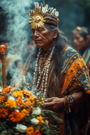 Shaman leads Ayahuasca ceremony in Costa Rica for spiritual healing and cultural experience. Concept Spiritual Healing, Ayahuasca Ceremony, Shaman, Costa Rica, Cultural Experience