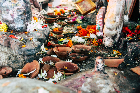 BALI, INDONESIA - SEPTEMBER 25, 2018: Sacrifice to gods, killing a bird. Bali island. traditional ritual.