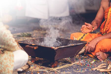 indian wedding ritual with fire tray