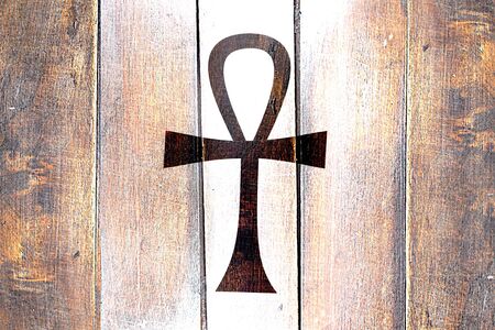Vintage ankh symbol on a grunge wooden panel