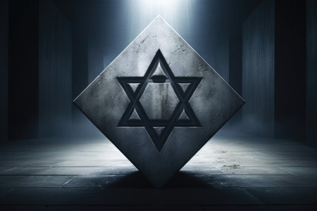 Golden Star of David on the wall in the light of the sun