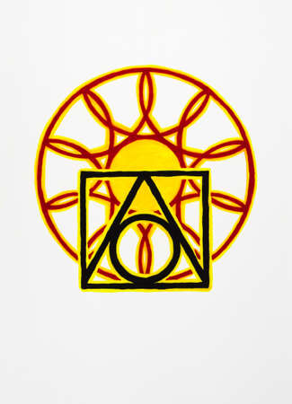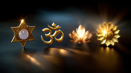 This captivating image features elegant symbols of spirituality rendered in radiant gold, ideal for inspirational and reflective art. The harmonious design invites contemplation and peace.
