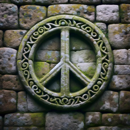 Peace sign carved in medieval castle stone