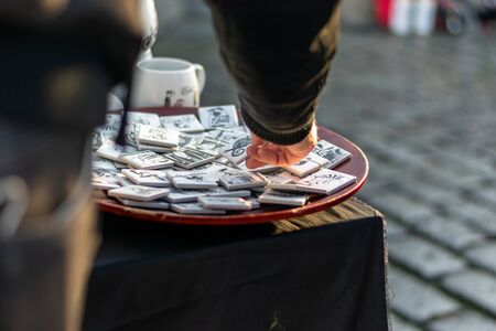 Giving Alms to the poor. Inflation and economic problems, unemployment and lack of money, concept.