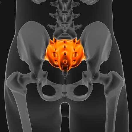 Human skeleton anatomy Sacral Bone 3D Rendering For Medical Concept