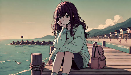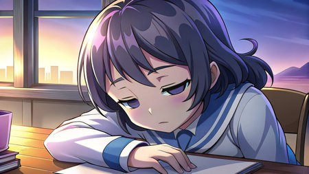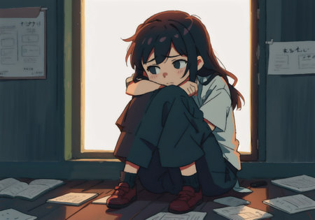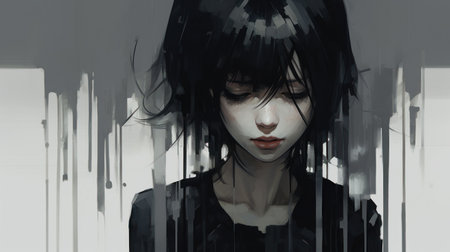 Lofi sad girl anime illustration