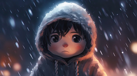 Cute little girl in the snow at night, 3d illustration