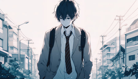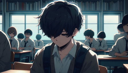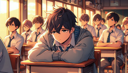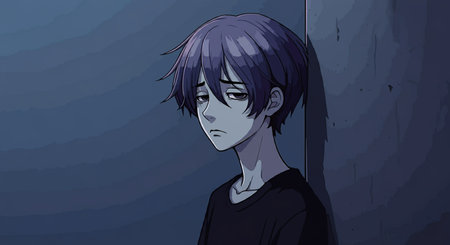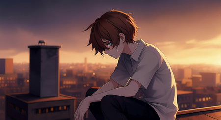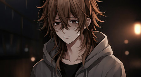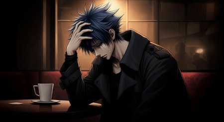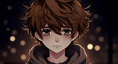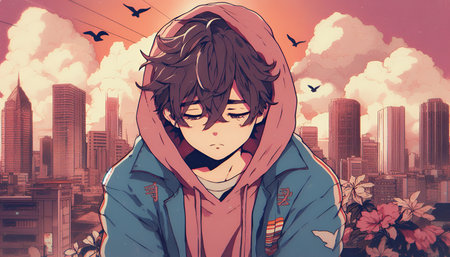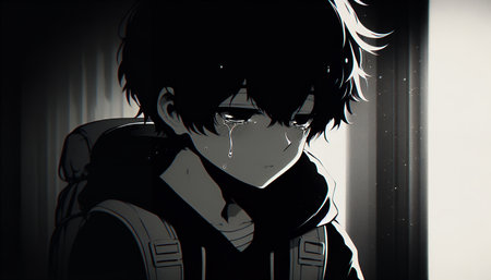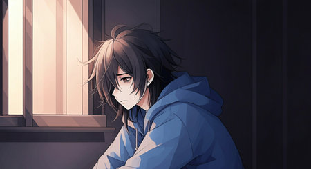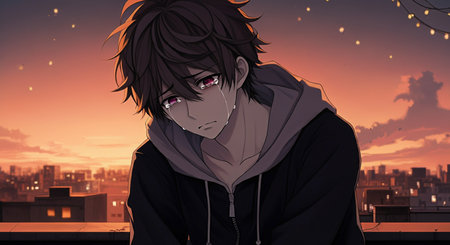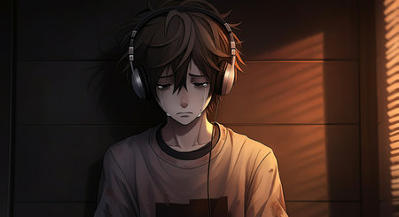 Lofi anime sad boy illustration