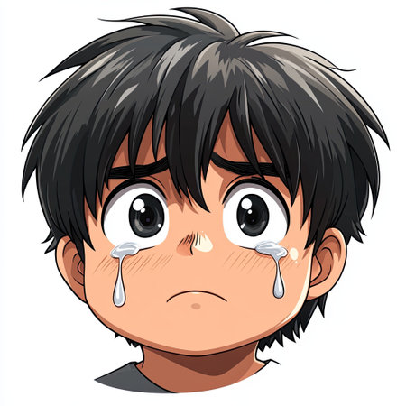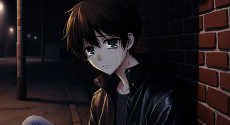 A Chibi boy with tears in his eyes, expressing deep sadness and loneliness