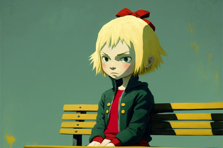 Illustration of a young girl cartoon sitting on a park bench