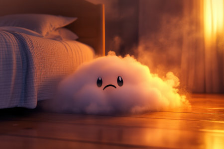 Sad cloud entering bedroom at sunset creating a cozy atmosphere