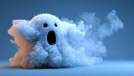 Funny ghost in a cloud of smoke. 3D illustration.