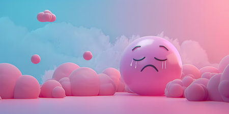 Blue balloon with sad face on blue sky background. 3d illustration