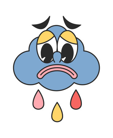 Illustration of a crying cloud with eyes closed on a white background