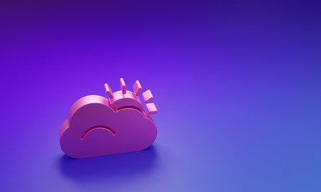 Sun and cloud weather icon isolated on purple-blue background. Minimalism concept. 3D render illustration.