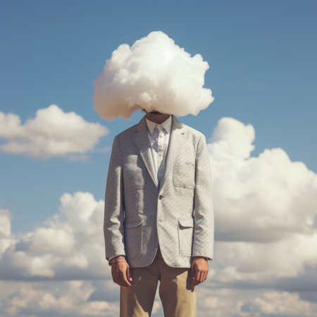 Whimsical Illustration of a Cloud-Headed Man