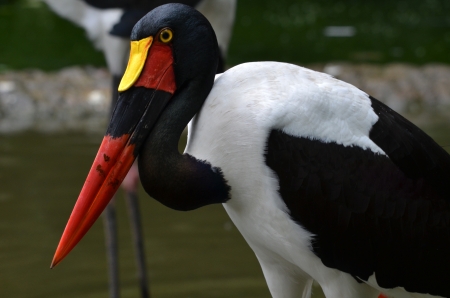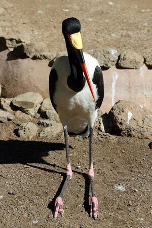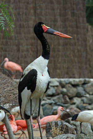 Saddle-billed stork. Latin name - Ephippiorhynchus senegalensis. The biggest of all storks
