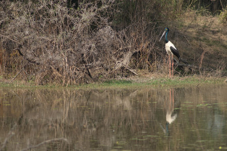 Black necked stork, Ephippiorhynchus asiaticus at Bharatpur in Rajasthan, India.
