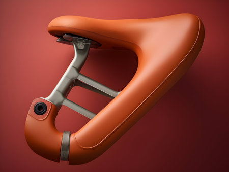 one black bicycle saddle with iron springs on a red background