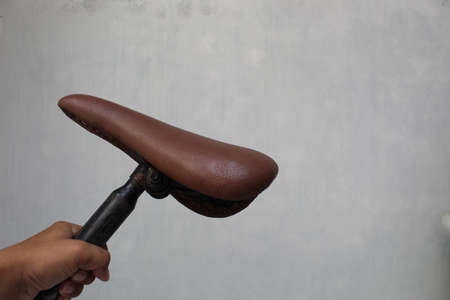 Closeup Old and dirty bicycle leather seat, old-fashioned style