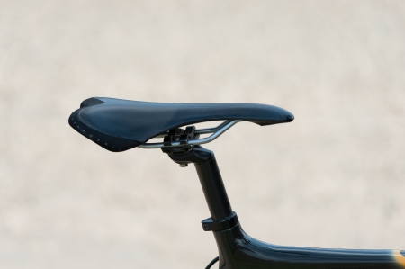 Bicycle saddle-back view and very selective focus.Useful image to promote a bicycle race or a healthy lifestyle concept.