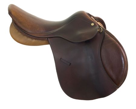 English style, brown leather, horse saddle isolated on white, clipping path included
