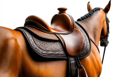 Leather horse saddle isolated on white background, perfect for equestrian and farm visuals