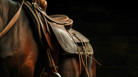 Close up of equestrian gear for summer olympic games competition, showcasing saddle and stirrups