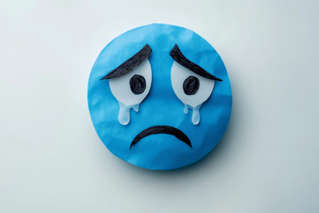 Cartoon sad face shedding tears, expressing sadness and sorrow on a simple white background