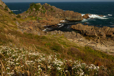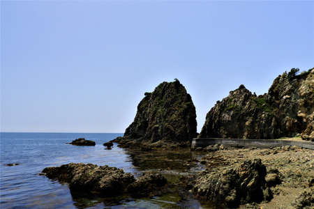 Omijima Island, Yamaguchi, Japan rocky coast on the Sea of Japan.