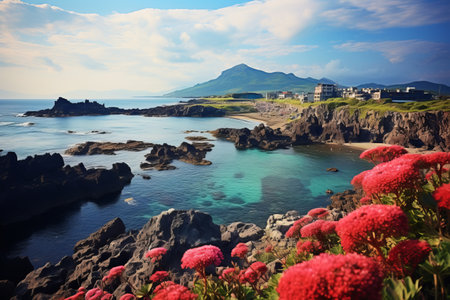 The coast and sea view from Seongsan mountain in Jeju island, South Korea.
