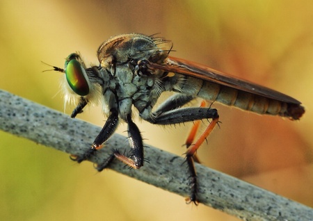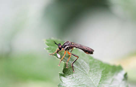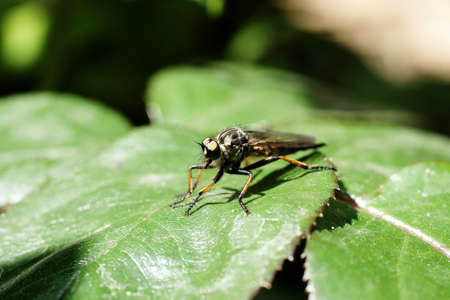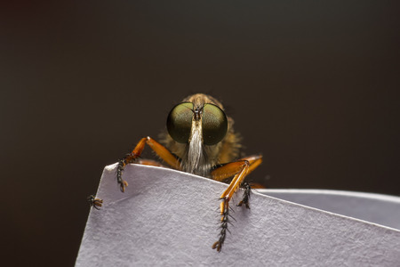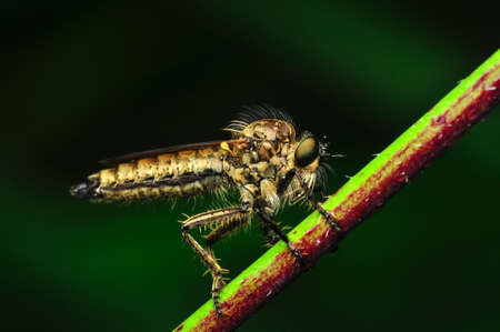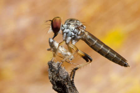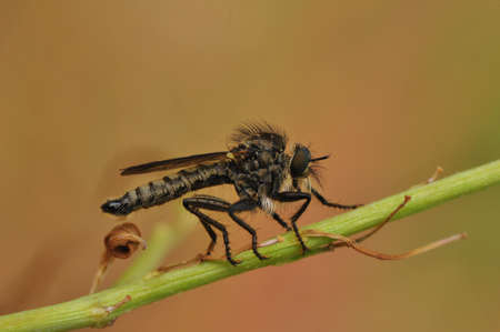 Asilidae killer fly, diptero that is a fierce predator of other insects to which it sucks the juices after catching them
