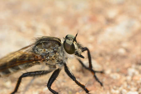 Robber fly Asilidae sp, an aggressive fly with predatory habits