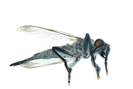 robberfly or robber fly - one of the three species of Megaphorus. clausicellus, laphroides or minutus. isolated on white background. side profile view