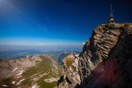 Snow covered summit of the mount Saentis on a wonderful day in winter time 18.12.2020