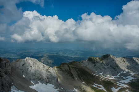 Alpine peak Altenalp in the Alpstein mountain range - Canton of Appenzell Innerrhoden AI , Switzerland. cloudy weather