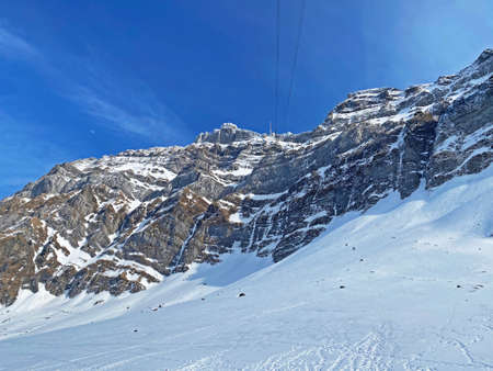 Afternoon view into the snow covered rock wall of Saentis, a Swiss mountain