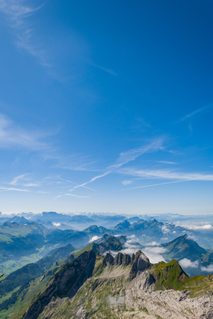 panoramic view from mountain Säntis in Switzerland. looking over Canton St. Gallen