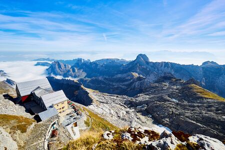 Mount Saentis and mount Altmann. Autumn scene in the Swiss Alps.