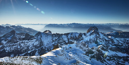 panoramic view from mount pilatus on sunny winter day in lucerne switzerland