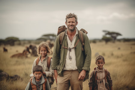 A family enjoys an unforgettable wildlife safari tour, watching animals in their natural habitat. Experience the beauty of nature and adventure together.