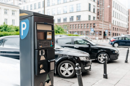Parking meter on city street. modern device
