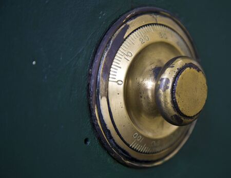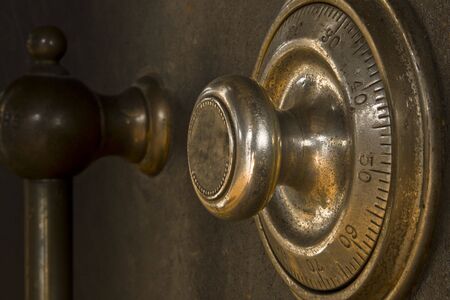 Turning a password on dial for open the safe box. Keep money and valuables in the vintage safe box steel. Stealing or keeping money and valuables safe.